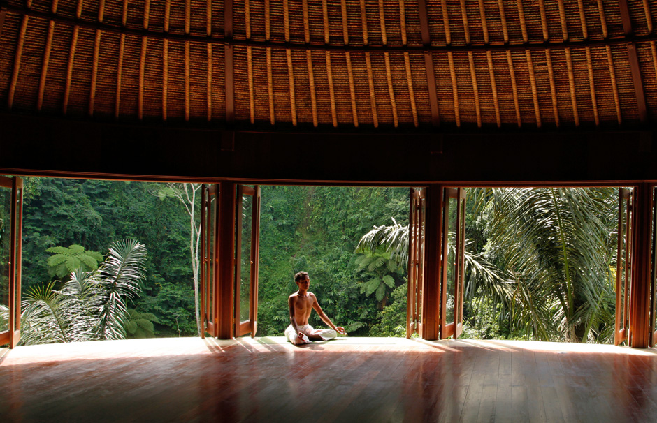 Set in 5 hectares of hillside gardens amongst lush tropical forests in the mountains near Ubud, Bali, Bagus Jati has 2 uniquely designed circular Yoga Pavilions, with vistas onto a natural bamboo forest. The villas aren’t too shabby either…